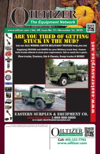 Eastern Surplus & Equipment Co. CALL TOLL FREE: 1-855-332-0500 or e-mail: dave@easternsurplus.net ARE YOU TIRED OF GETTING STUCK IN THE MUD? Let our ALL WHEEL DRIVE MILITARY TRUCKS help you out Supplying TRUCKS and PARTS for your Military truck fleet. Custom built trucks offered to meet your requirement. Call or email for a quote. Plow trucks, Tractors, Cab & Chassis, Dump trucks & MORE! www.oiltizer.com • Vol. 49, Issue No. 31 • November 1st, 2025 Call: 405-323-7782 www.oiltizer.com Contact us by phone or e-mail to: Inquire about Advertising, Change Address Information, or Unsubscribe from our Mailing List. Aterirst run, publisher does not accept responsibility for mistakes in ads. f f